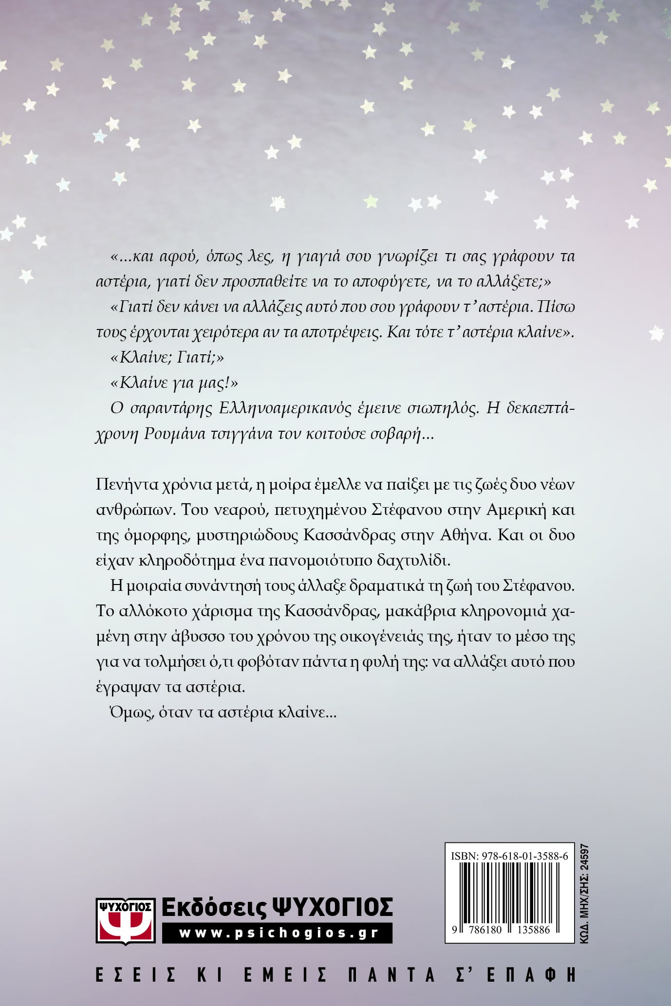 Η μοιραία συνάντησή τους άλλαξε δραματικά τη ζωή του Στέφανου. Το αλλόκοτο χάρισμα της Κασσάνδρας, μακάβρια κληρονομιά χαμένη στην άβυσσο του χρόνου της οικογένειάς της, ήταν το μέσο της για να τολμήσει ό,τι φοβόταν πάντα η φυλή της: να αλλάξει αυτό που έγραψαν τα αστέρια.